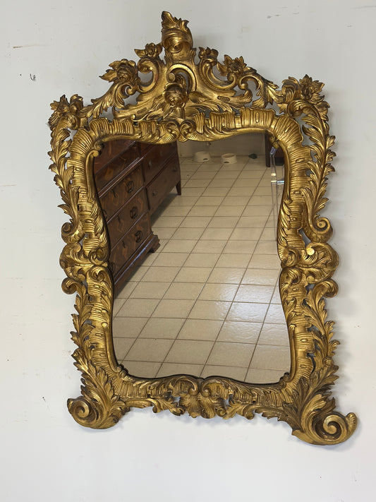 Specchiera con cornice in legno intagliato e dorato. Lombardia XVIII secolo