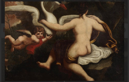 Olio su tela . Leda e il cigno pittore lombardo del XVII secolo epoca 600