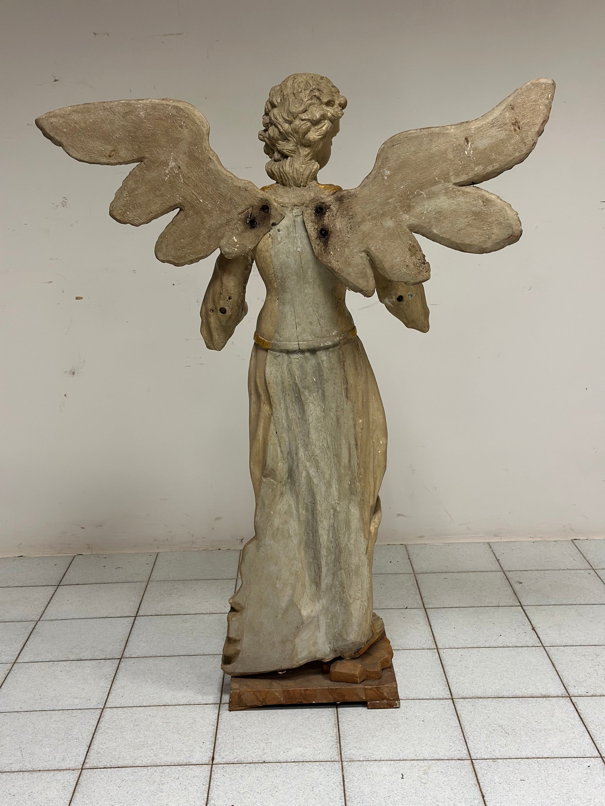 Angelo alato in legno intagliato e dorato . Siena XVIII secolo. H 136 cm