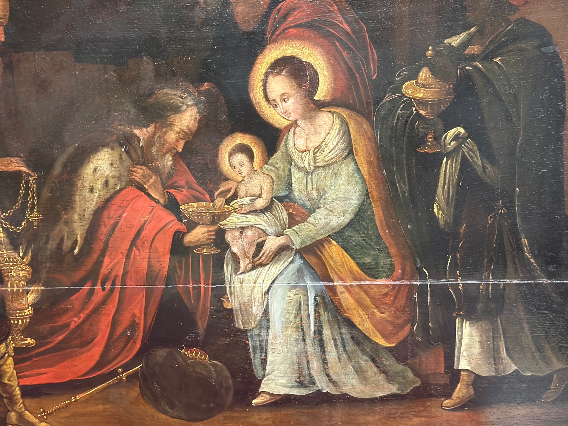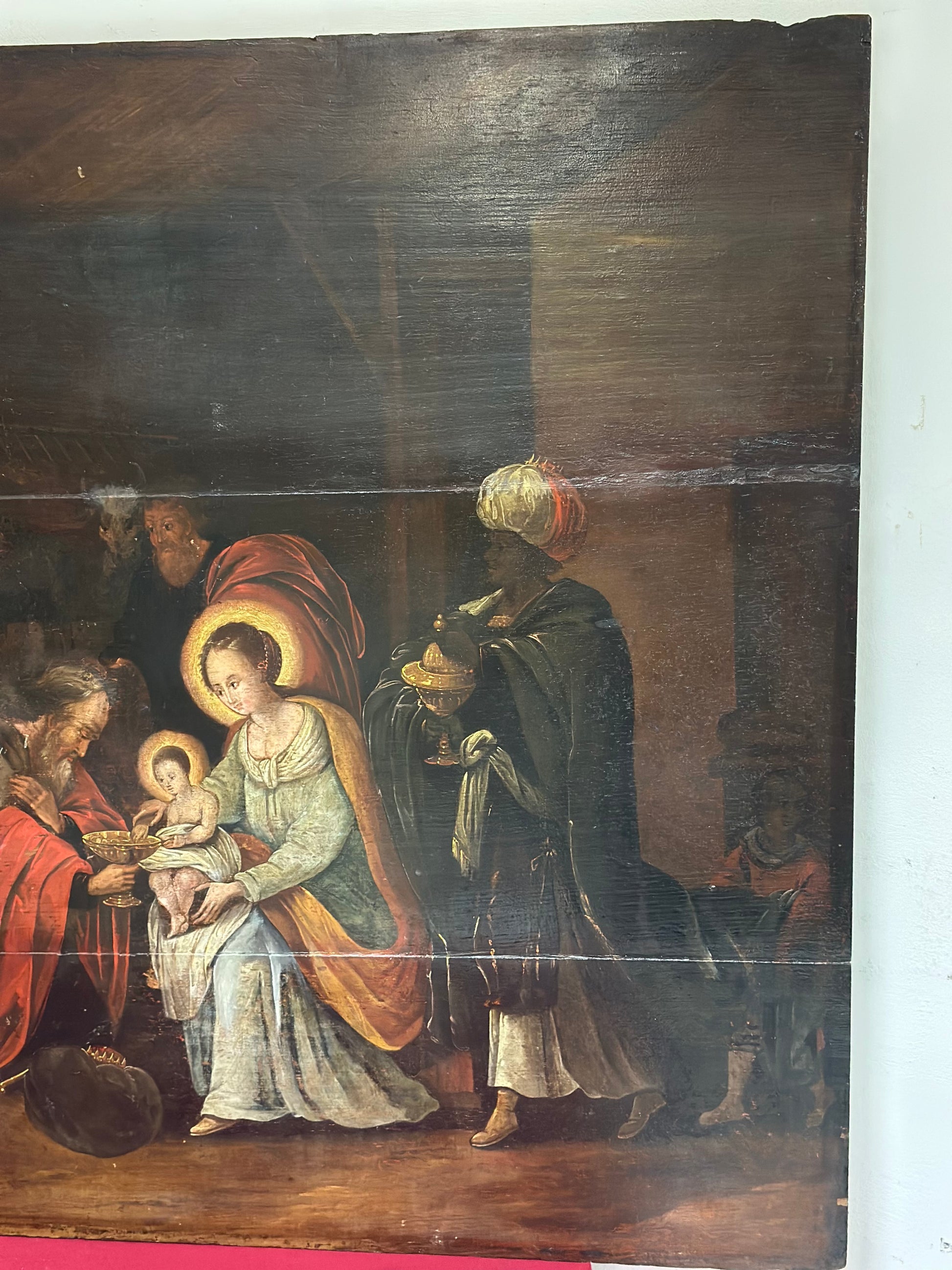 Autore: Cornelis de Baellieur (Anversa 1607-1671). Soggetto: Adorazione dei Magi. Tecnica e supporto: olio su tavola. Dimensioni: 120 x 90.