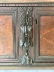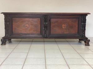 Cassapanca lombarda scolpita . Bergamo XVII secolo