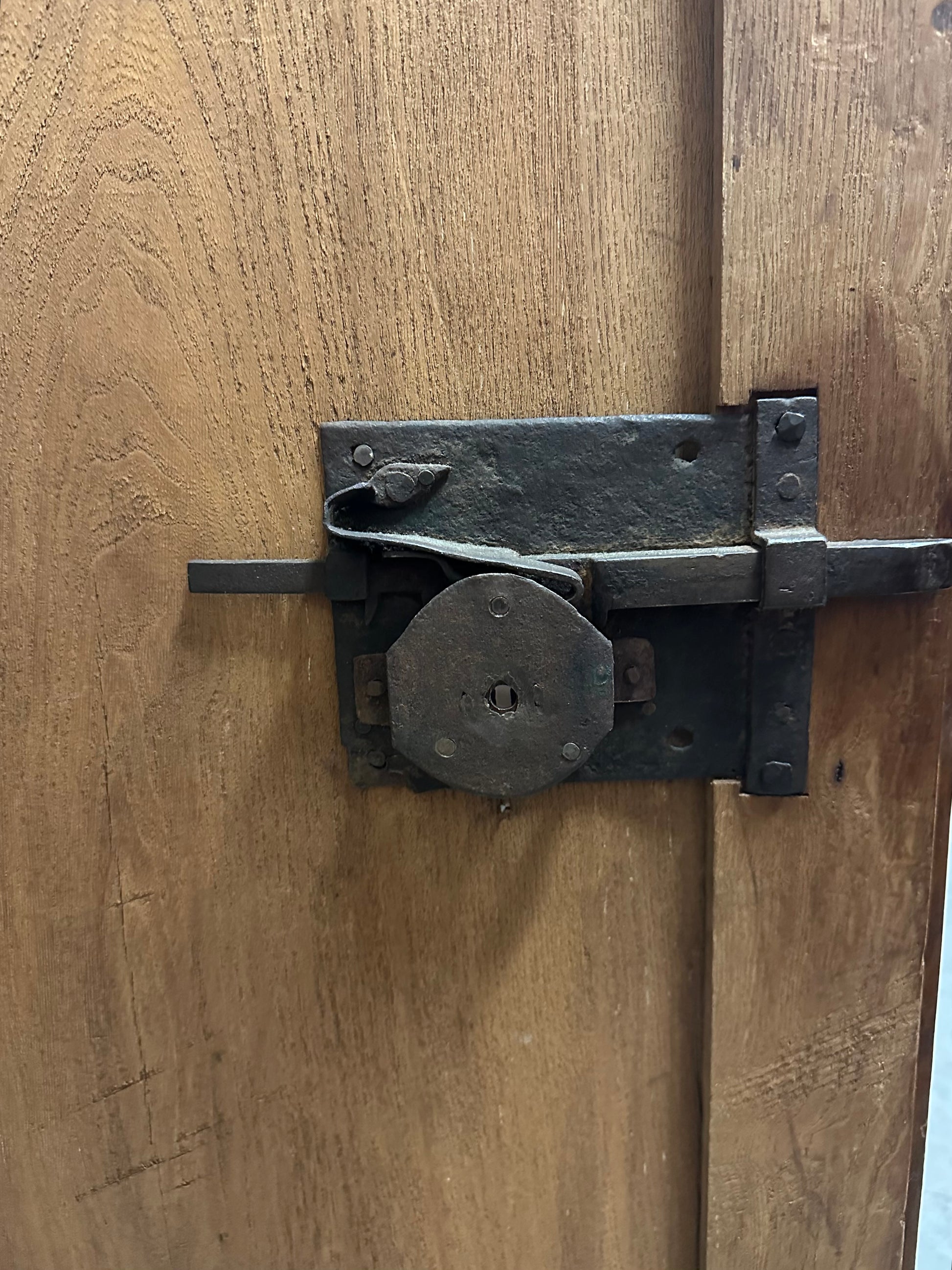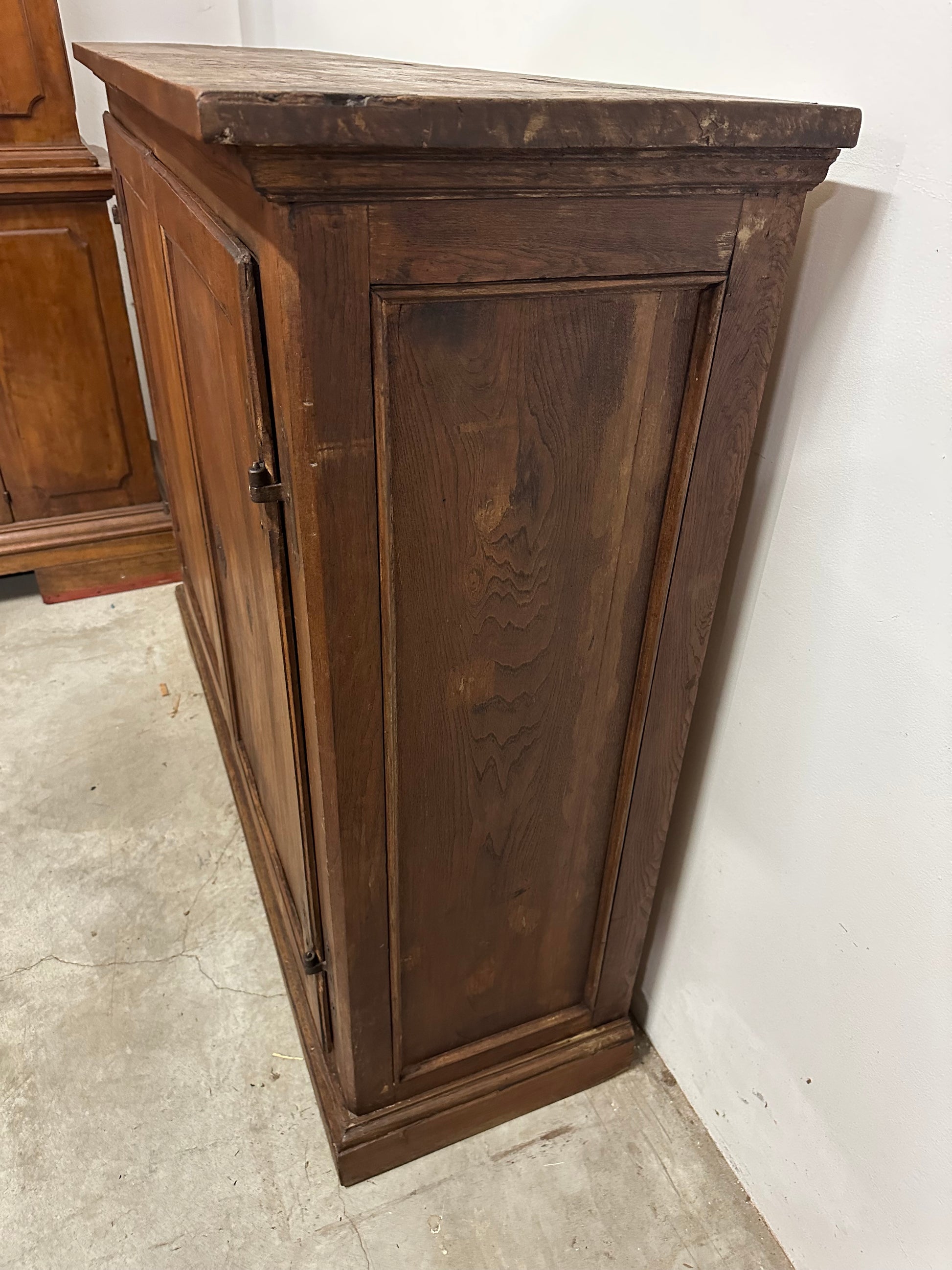 Credenza Luigi XIV da sacrestia tutta costruita in olmo epoca prima metà dell’700 di area emiliana modenese piedi a mensola con due grandi porte e due ripiani interni
