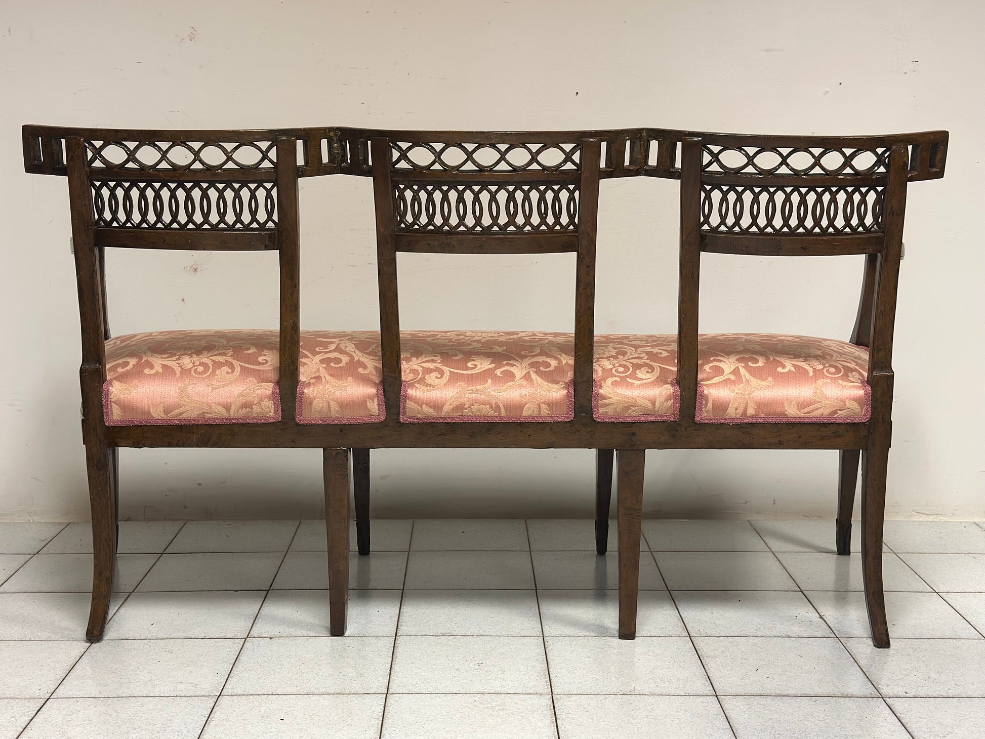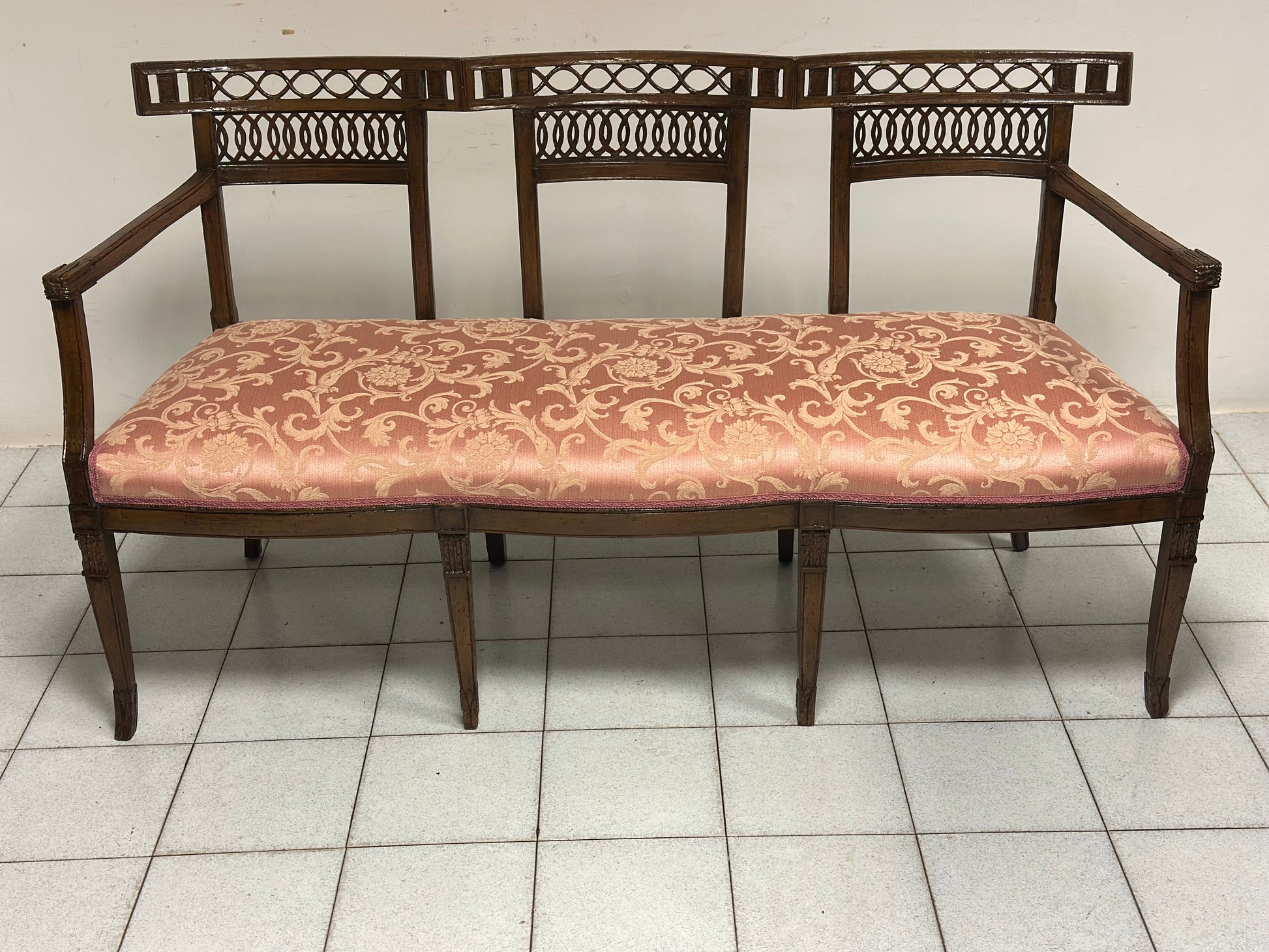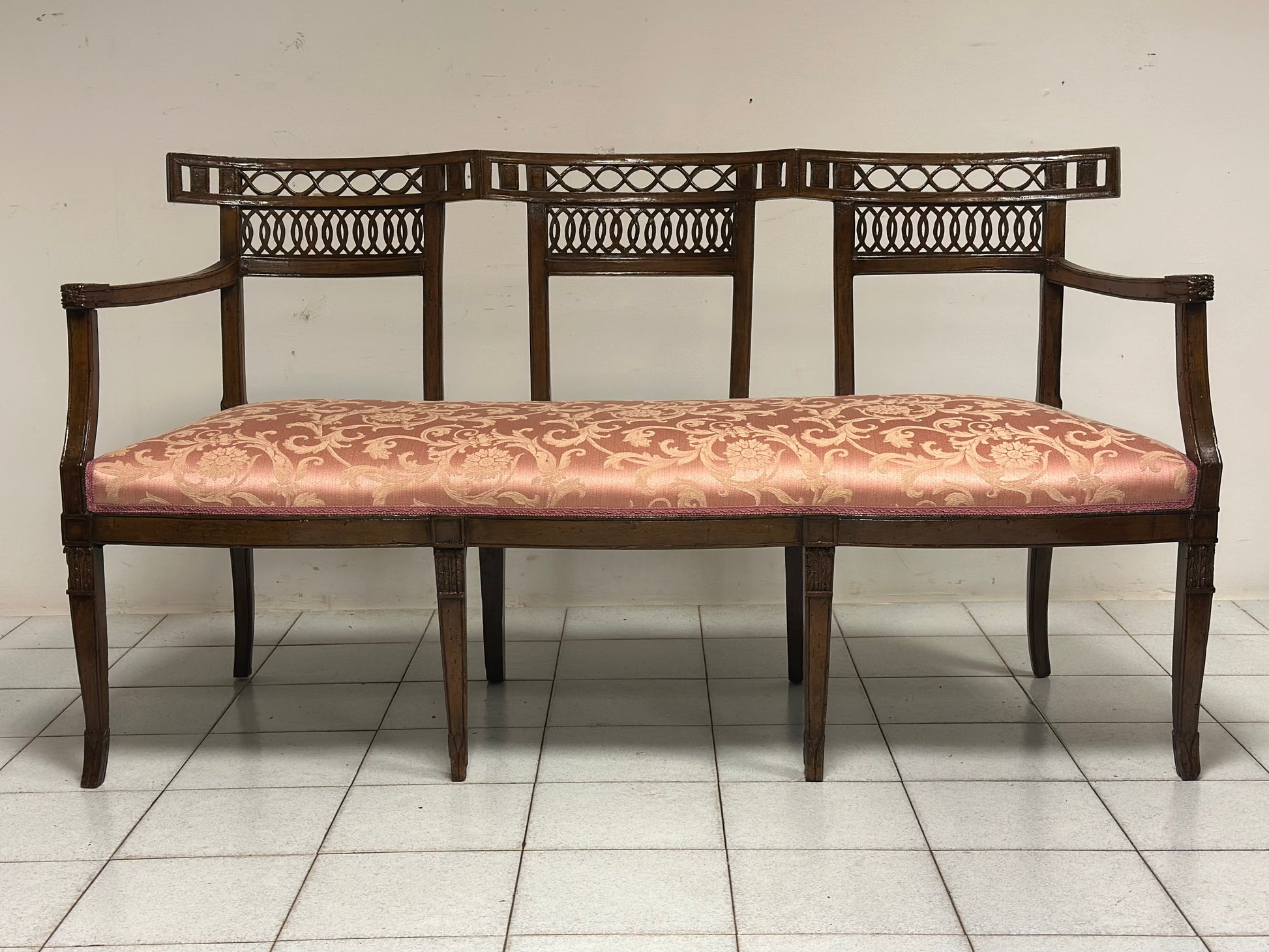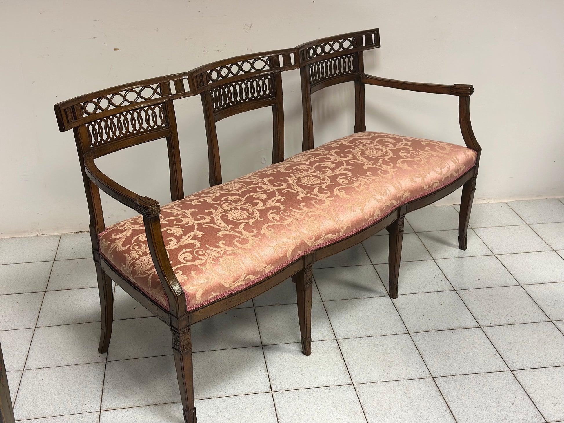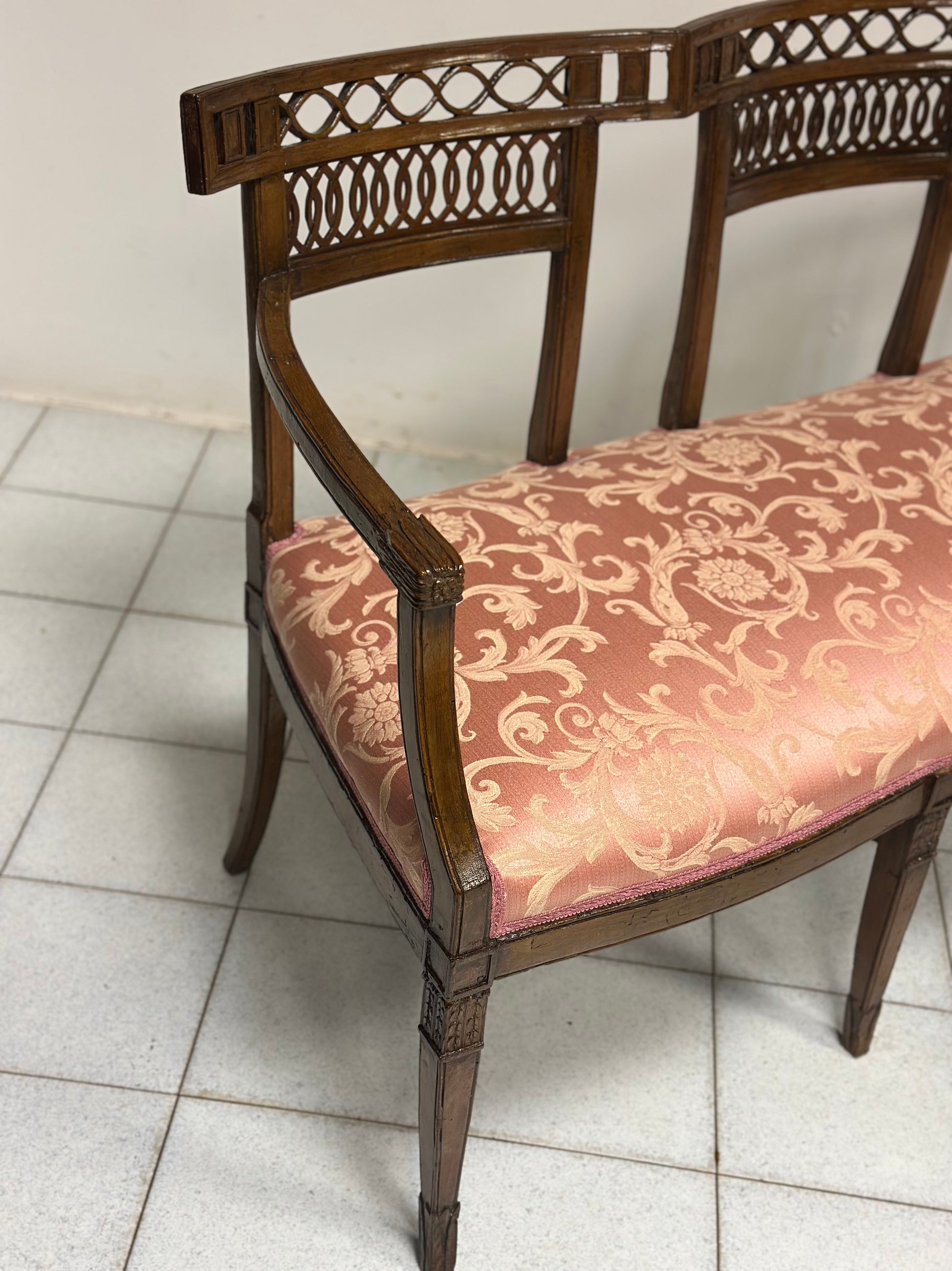 Divano Luigi XVI in noce. Con schienali sagomati traforati gambe a spillo seduta imbottita Venezia XVIII secolo fine 700