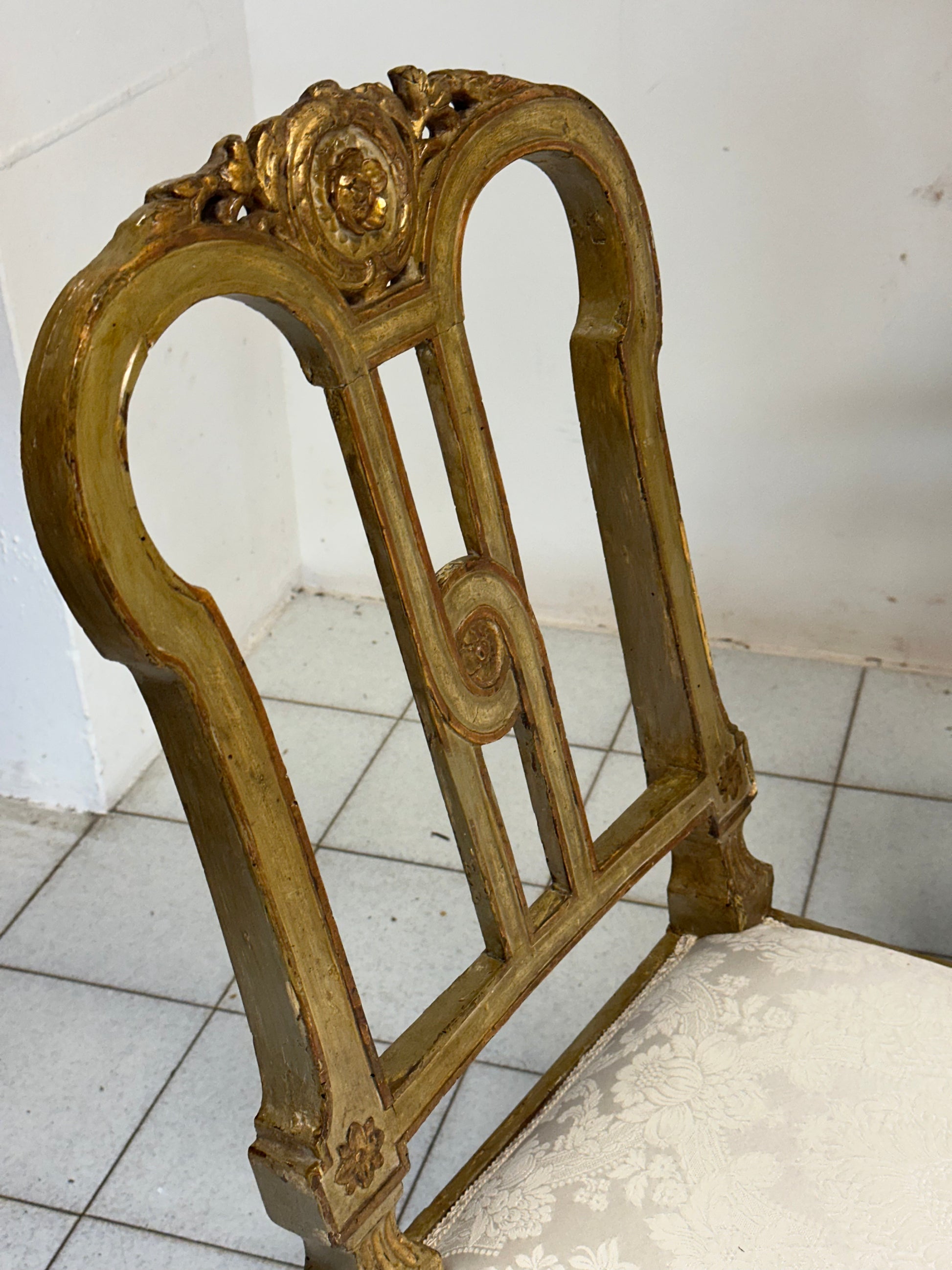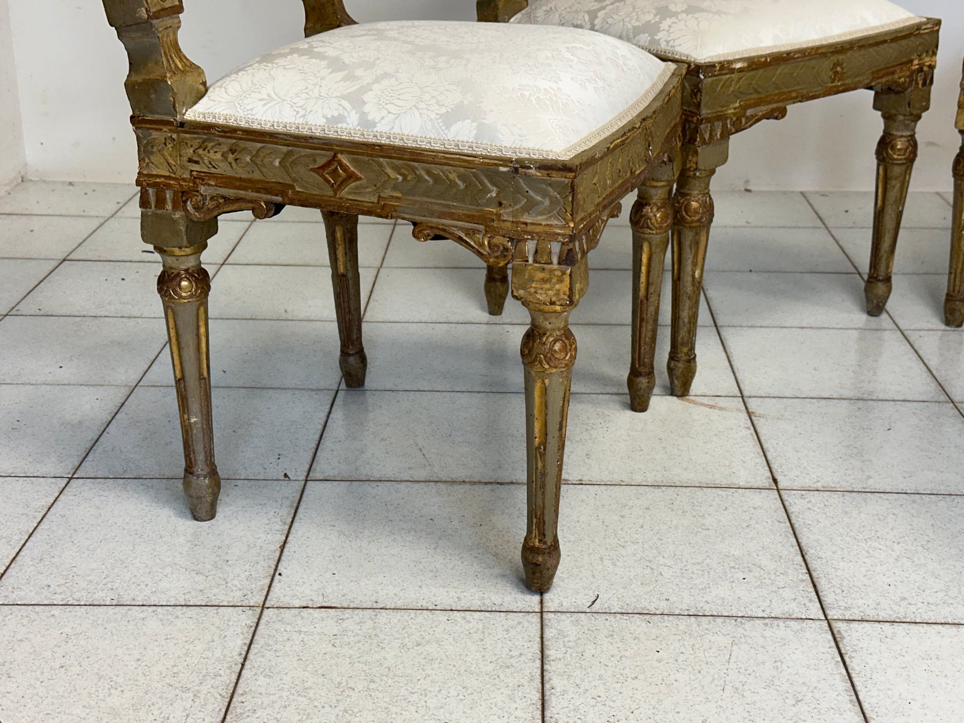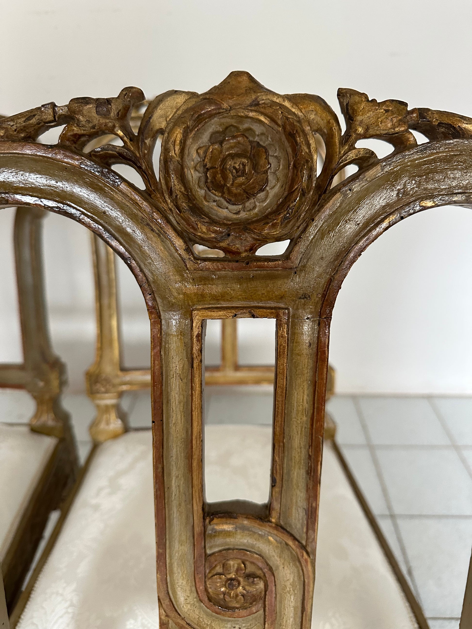 Gruppo di quattro sedie Luigi XVI laccate e dorate. XVIII secolo. Restaurate