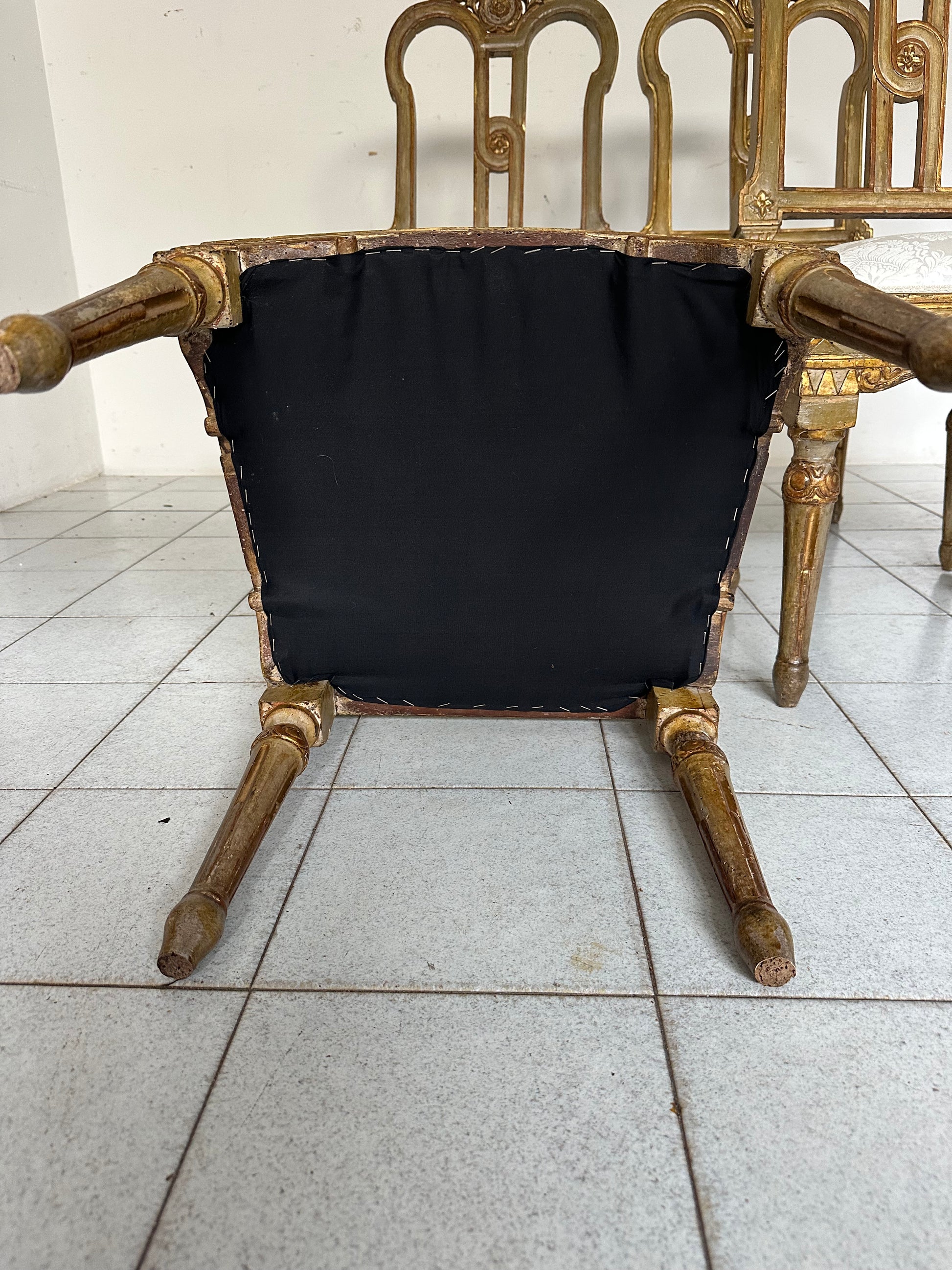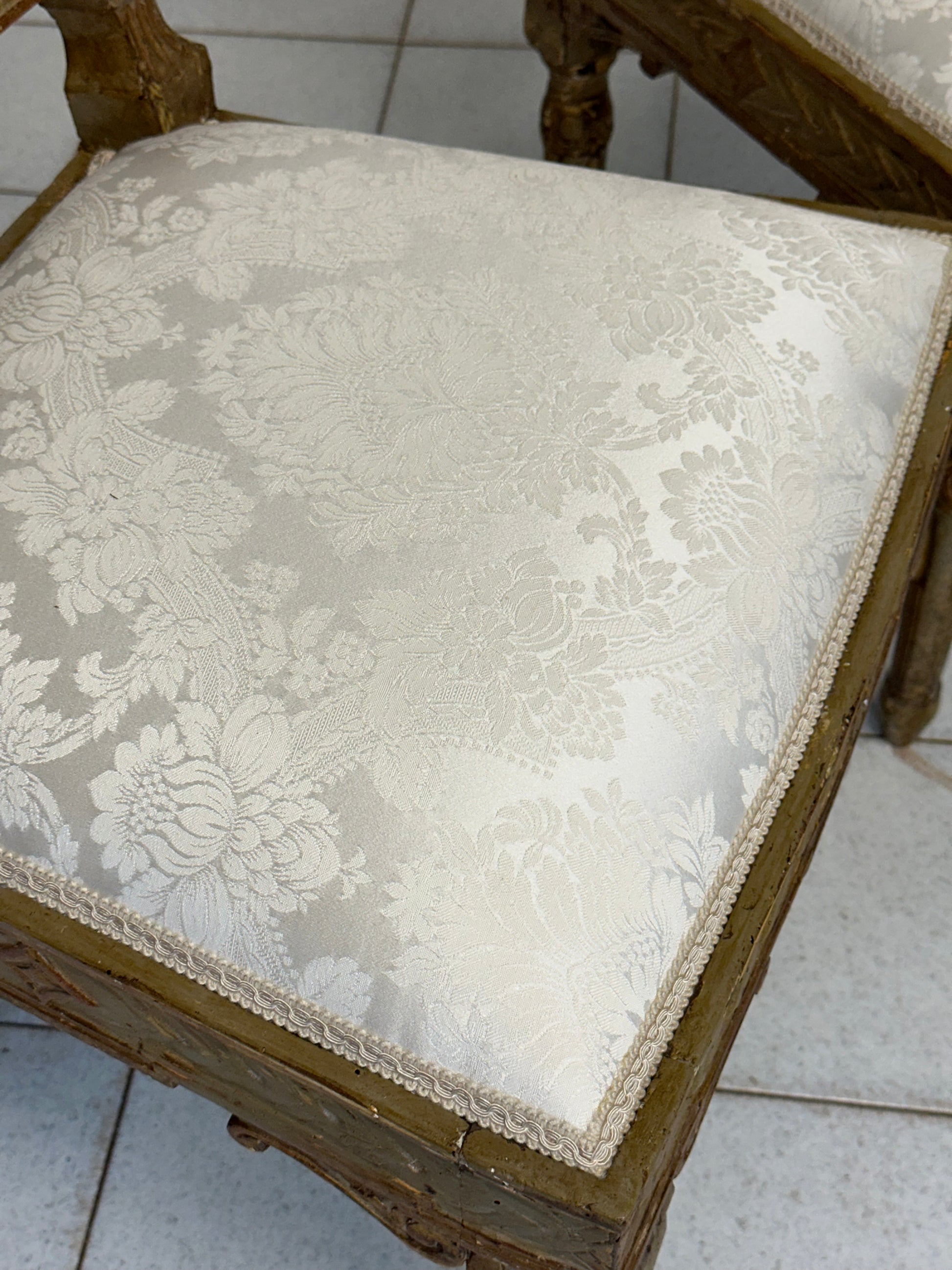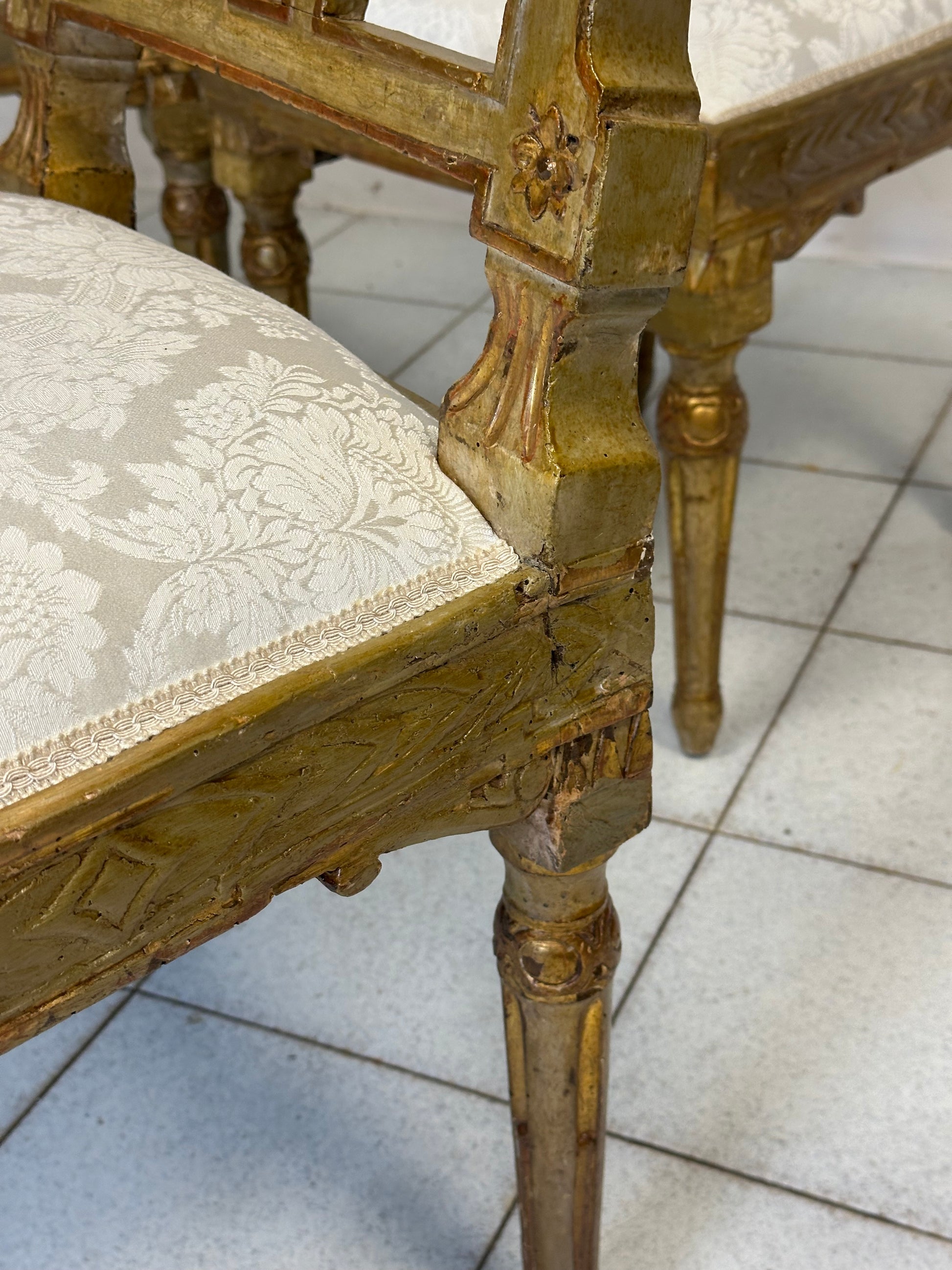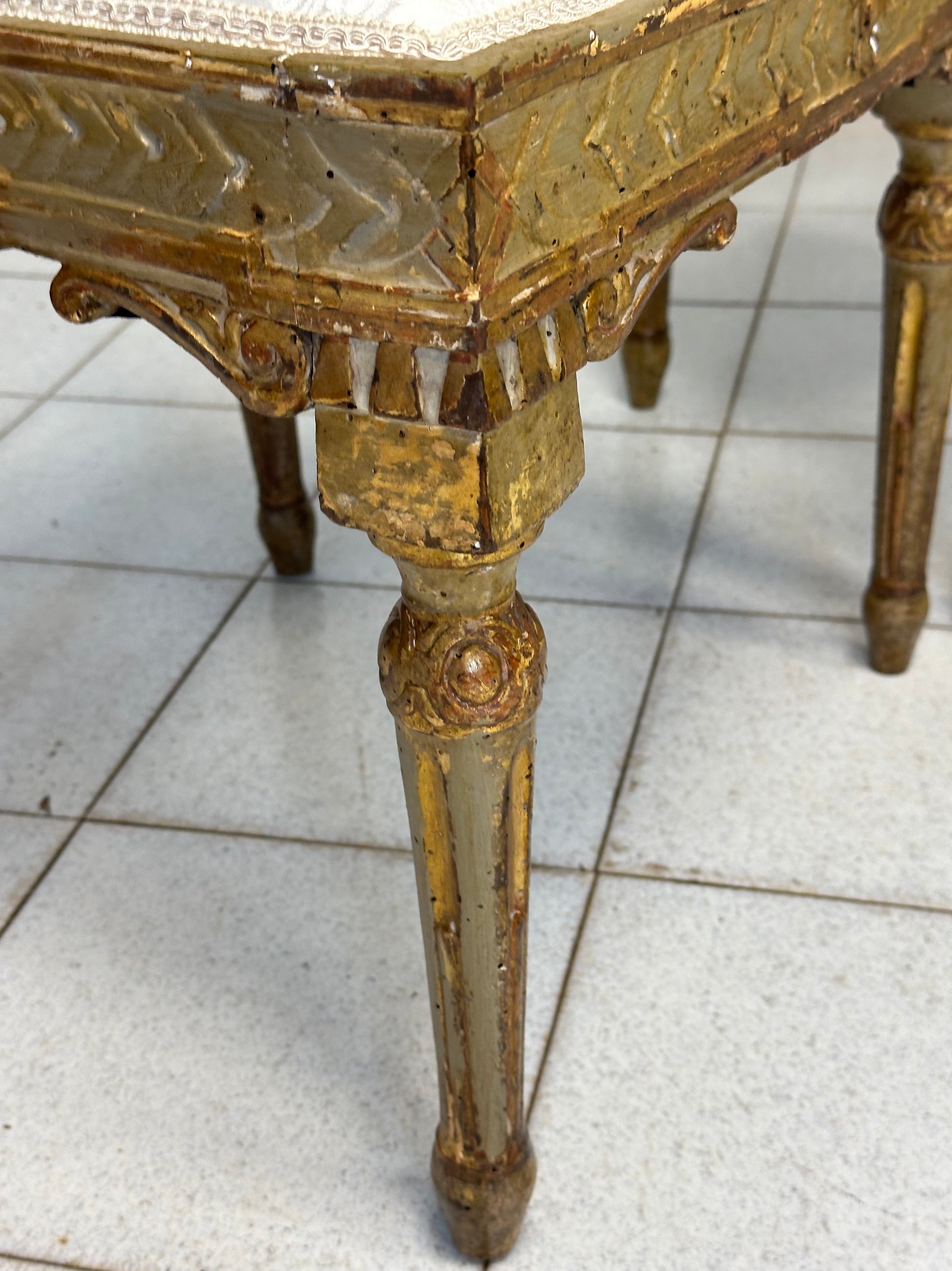 Gruppo di quattro sedie Luigi XVI laccate e dorate. XVIII secolo. Restaurate