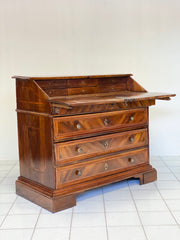 Canterano a ribalta emiliano in noce con intarsio in acero su tutto il mobile cassetti lastronati incorniciati piedi a mensola coevi del periodo serrature pomoli e chiavi originali