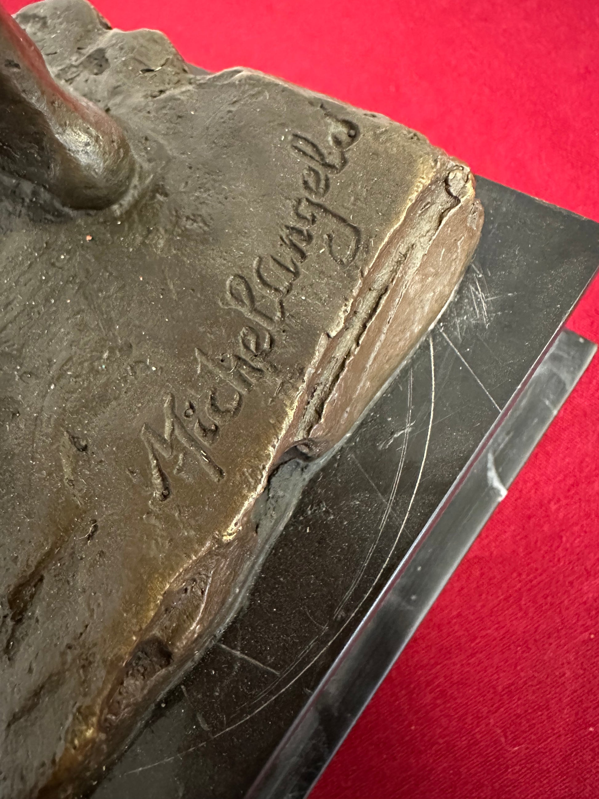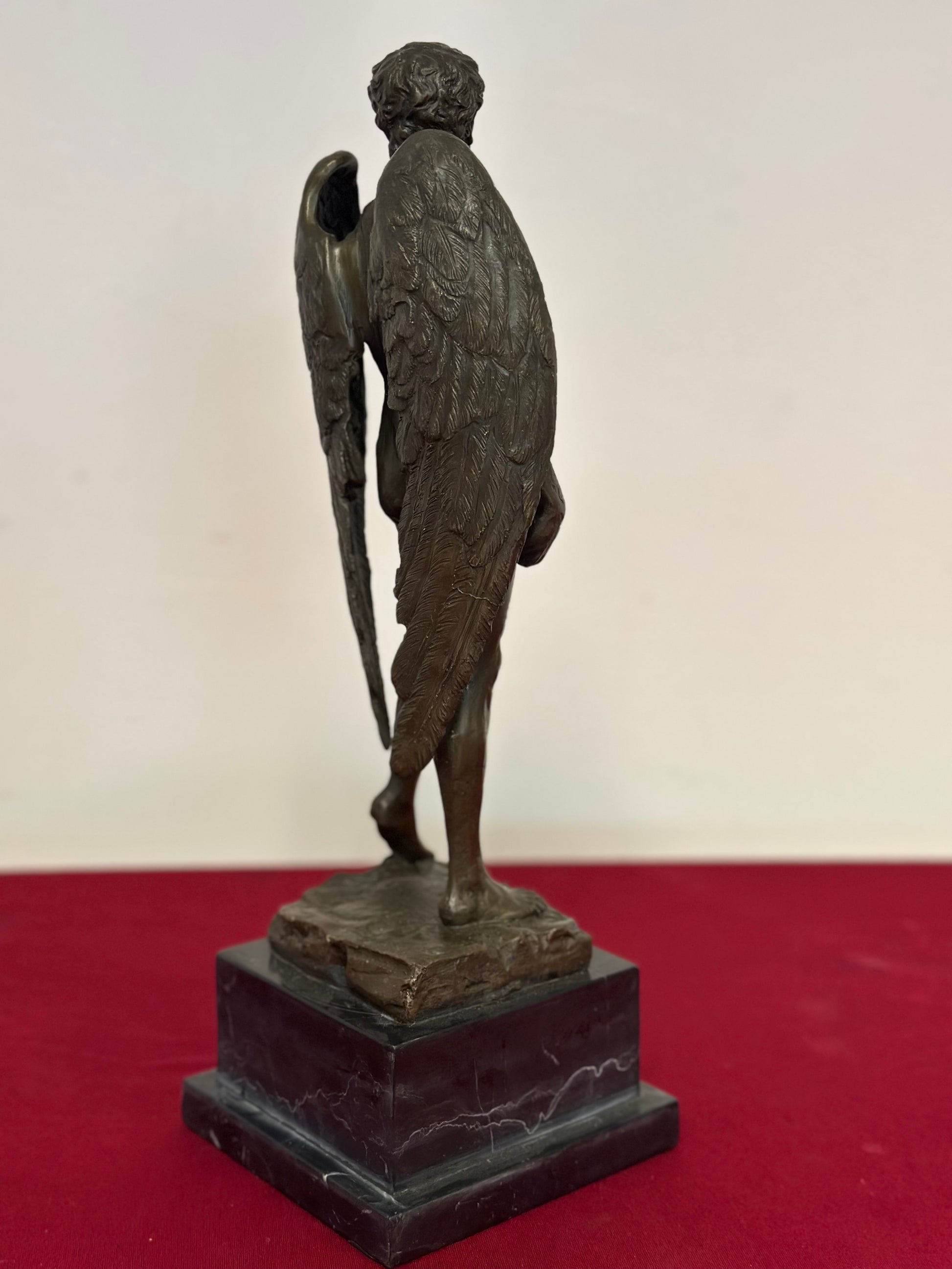 La scultura rappresenta un opera ispirata al David di Donatello in particolare la versione in bronzo in fusione a cera persa con base in marmo e l’aggiunta delle ali che richiamano la figura di un angelo o del Dio mercurio