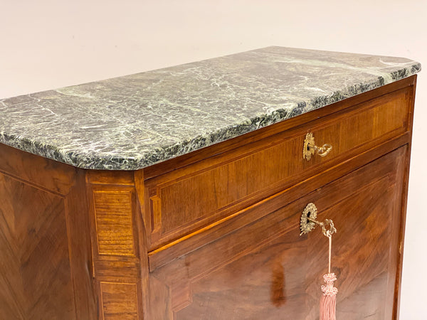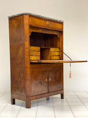 Secretaries completamente lastronato in noce e legni vari pregiati piano in marmo verde alpi un cassetto sottopiano anta a ribalta con scarabattolo interno due ante alla base.