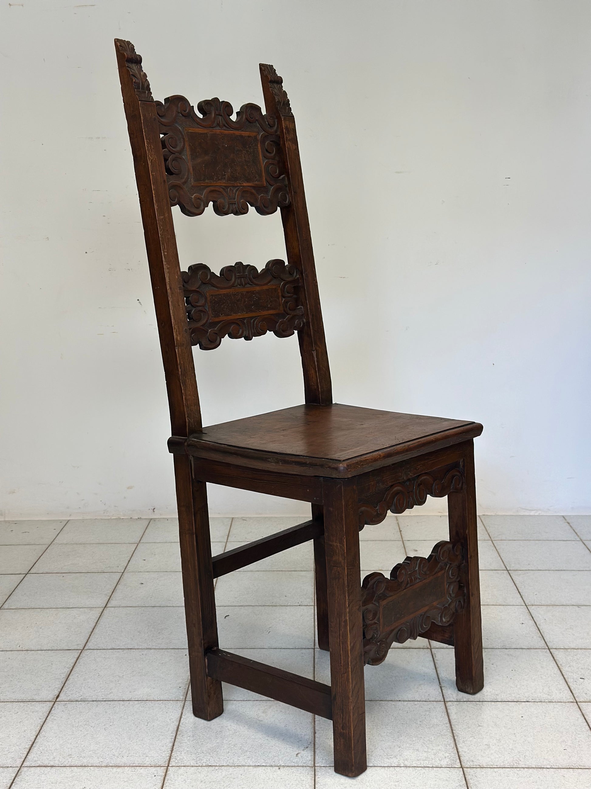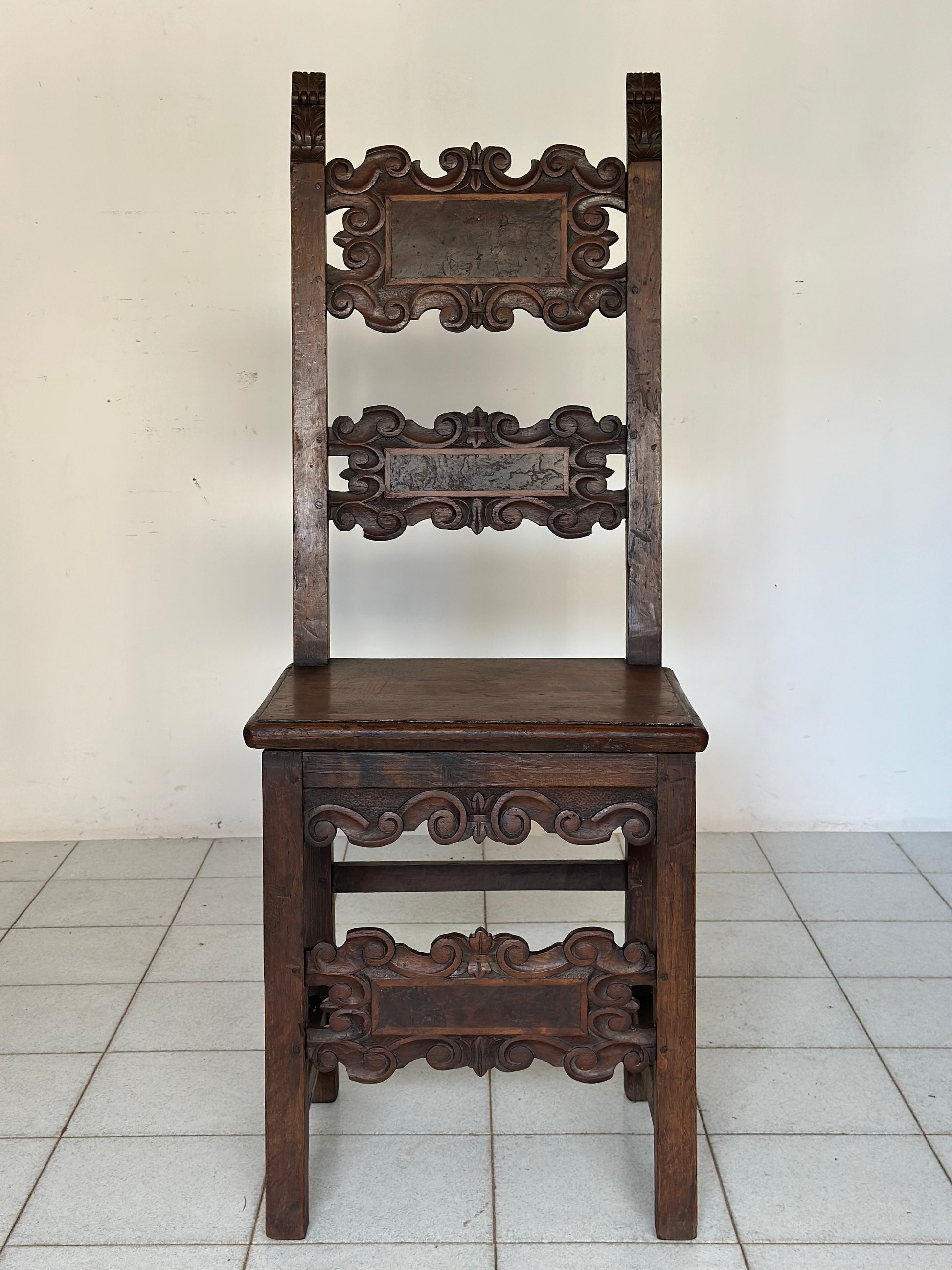 Sedia a cartella Luigi XIV in noce intagliato . Lombardia epoca 600