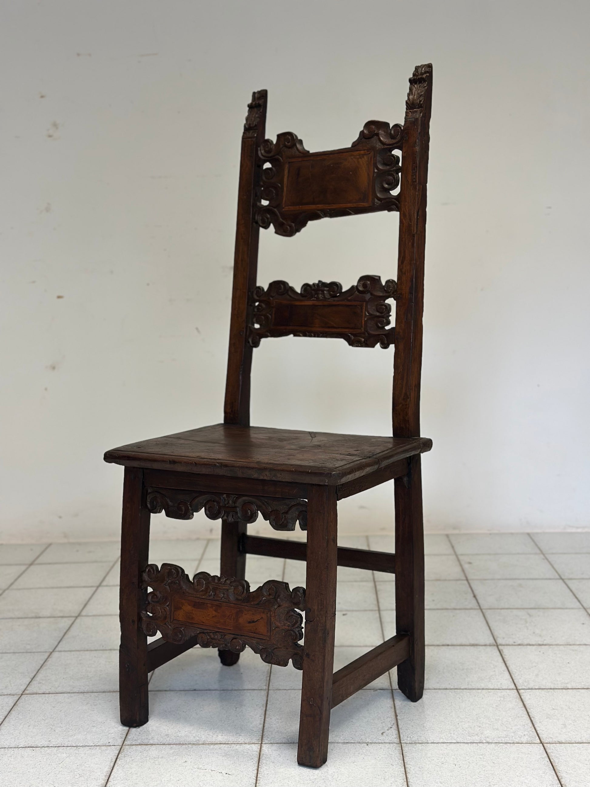 Sedia a cartella Luigi XIV in noce intagliato . Lombardia epoca 600